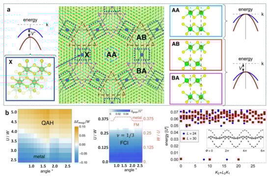 (a) Twisted heterostructures of ZrS2 and degradation of the electronic state. (b) Quantum anomalous Hall effect and fractional Chern insulators [].
