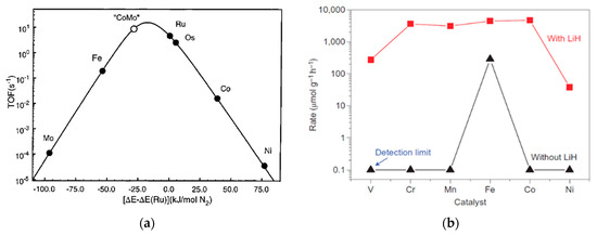 - Wang, P.; Chang, F.; Gao, W.; Guo, J.; Wu, G.; He, T.; Chen, P. Breaking scaling relations to achieve low-temperature ammonia synthesis through LiH-mediated nitrogen transfer and hydrogenation. Nat. Chem. 2017, 9, 64–70. [Google Scholar] [CrossRef]