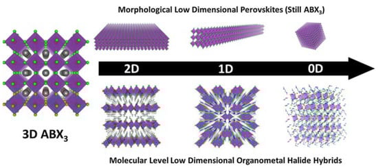 44. Zhou, C.; Lin, H.; He, Q.; Xu, L.; Worku, M.; Chaaban, M.; Lee, S.; Shi, X.; Du, M.-H.; Ma, B. Low dimensional metal halide perovskites and hybrids. Mater. Sci. Eng. R Rep. 2019, 137, 38–65. [Google Scholar] [CrossRef]