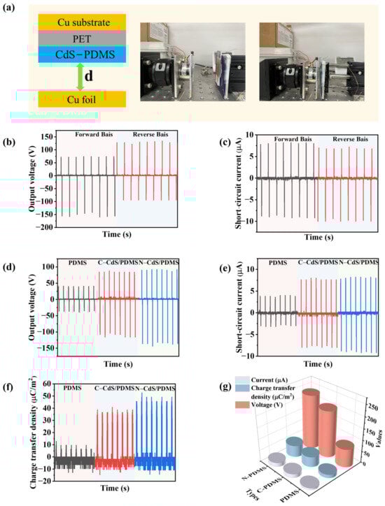 Figure 5g, the superior output performance of N-CdS/PDMS verifies the effectiveness of our approach in enhancing TENG performance by inserting N-CdS into the PDMS matrix.