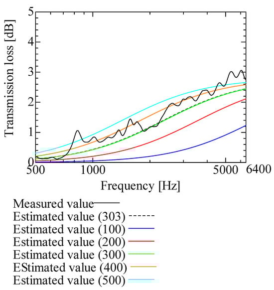 The results in Section 3.2 show that transmission loss can be estimated using the SLFM [16,17,18], which involves only the flow resistivity, porosity, and bulk density. This is similar to previous work involving the sound absorption coefficient [18]. In the SLFM, the effective density [Equation (1)] and effective volume modulus [Equation (4)] are given by