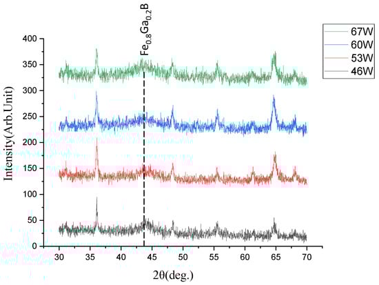 The XRD pattern of Fe0.8Ga0.2B film with different FeGa powers.