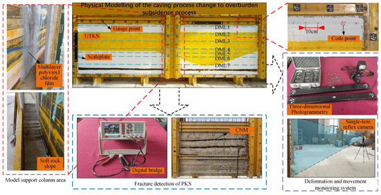The physical model’s size limitation precluded reaching the eventual failure of the thick sandstone layer, making it impossible to assess the consequent failure. Future studies may benefit from employing a smaller geometry similarity ratio to simulate larger areas, especially in physical models with similar geological conditions. Carbon nanocomposite materials show potential for the physical modelling of overburden subsidence and damage. Further research is necessary for the specific methods employed for material formulations, elector layout, and other technology details. A deeper understanding of these details would enrich the study and serve as a guide for future research in the mining field.