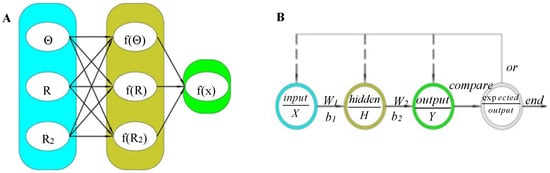 In Figure 4B, w1 is the weight function between the input layer and the hidden layer. w2 is the weight function between the hidden layer and the output layer. b1 and b2 are offset functions, respectively.