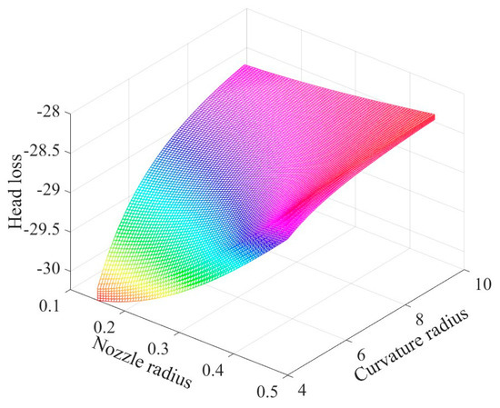 From Figure 5, it can be found that the structural parameters are non-linear and monotonic for the head loss, with a negative z-axis indicating the lost head.