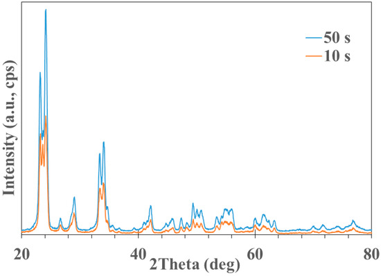 Analysis of the GIXRD patterns acquired from the tungsten oxide powders deposited for 50 s.