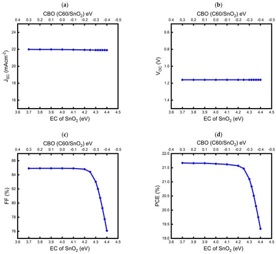 | EC of SnO2 | CBO | PCE (%) | VOC (V) | JSC (mA/cm2) | FF (%) |