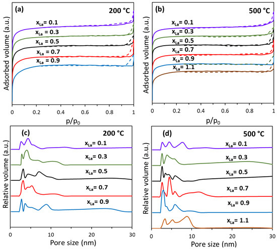 La = 0.3, less significant changes in the obtained nanoparticles after annealing at 200 °C and 500 °C were found. The exception here is a slight increase in their diameters, as shown in