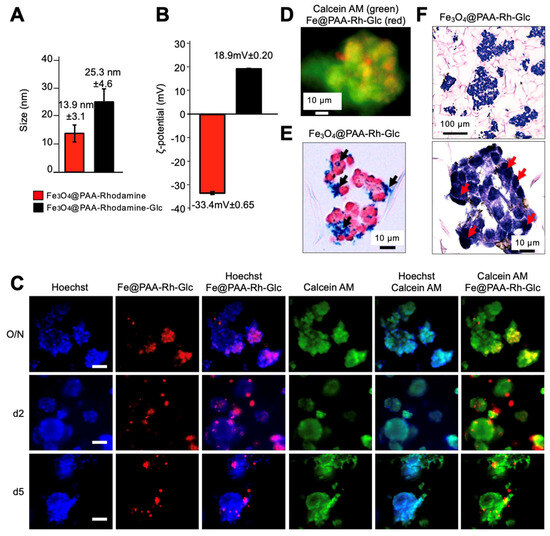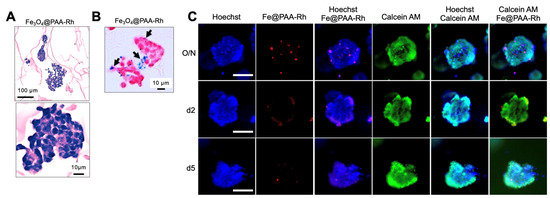 4@PAA-Rh nanoparticles at a concentration of 50 Fe μg/mL overnight. We employed various methods to assess the presence of nanoparticles within NB cells in the 3D context, including histological analysis (