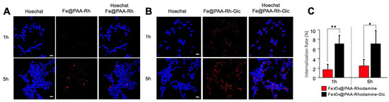 We then evaluated the internalization of these glucose-modified nanoparticles (Fe
