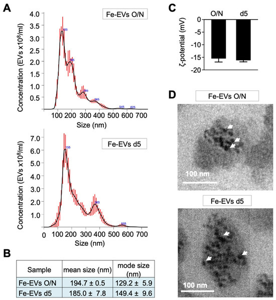 Figure 5B). Importantly, when loaded with Fe-NPs, the zeta potential of the EVs remained negative and consistently around −15 mV (