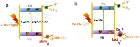 Photogenerated charge transfer process of (a) CIS, and (b) Co-Pi/CIS.