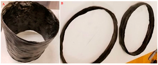 CF-CNT cylinders (A,B) rings. The material is flexible (not as brittle as CFRP) and is expected to have good tensile strength and toughness.