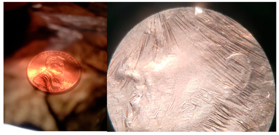 CNT fabric about 10 microns thick or thicker is almost impermeable to air and water. To make the fabric breathable, thin layers are used, as shown in Figure 14. CNT bundles in the fabric are 10–70 nanometers in diameter. These strands are like a string; they do not have bending stiffness and drape and fill in the fabric’s porosity. This is unlike rigid microfibers that have bending stiffness, produce pores, and are breathable in thicker sections. Thus, designing CNT filter membranes is more complicated than designing filters using microfibers. The nanoscale size of the bundles may provide filtering with a smaller pressure drop or filtering of smaller-size particles. Figure 15 shows a partly transparent CNT sheet sample that can be used for potential filtering applications.