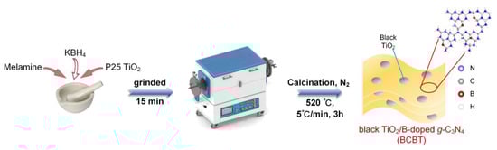 Schematic illustration for synthesis of the black TiO2/B-doped g-C3N4 (BCBT).