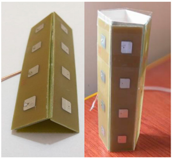 Manufactured prototype of the hexagonal (5 × 4) mMIMO of the patch antenna array [40].