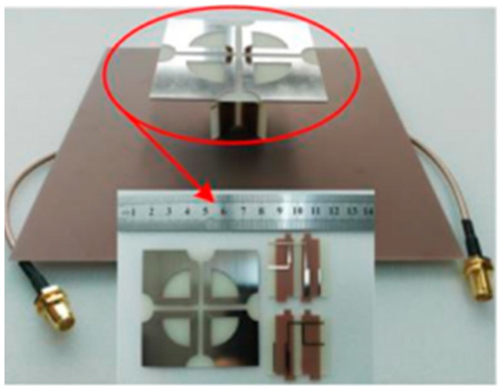 - Zhou, H.; Peng, H.; Jin, W.; Mao, J.F. A new low-profile and closely spaced dual-polarized antenna for massive-MIMO applications. In Proceedings of the 2016 IEEE International Conference on Microwave and Millimeter Wave Technology, Beijing, China, 5–8 June 2016; Volume 2, pp. 659–661. [Google Scholar]