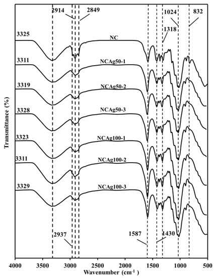 - Fatma, A.; Ghorbel, N.; Bresson, S.; Abbas, O.; Kallel, A. Study of nanocomposites based on cellulose nanoparticles and natural rubber latex by ATR/FTIR spectroscopy: The impact of reinforcement: The impact of reinforcement. Polym. Compos. 2018, 40, 2076–2087. [Google Scholar]