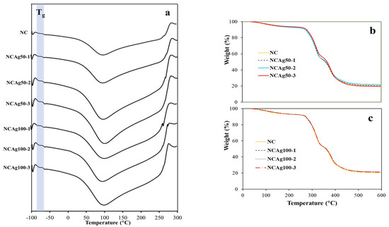 | Samples | AgNPs (% w/w) | Crystallinity (%) | Td (°C) | Tg (°C) | WAC (%) (After 7 Days) | |