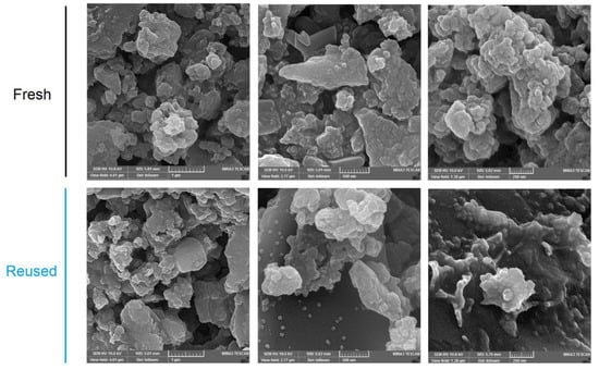 Photocatalysis is a green and sustainable technology that is becoming extensively researched due to the advantages of using natural sunlight as an energy source, the simple infrastructure required, the low-energy consumption, and the mild reaction conditions. The application of light-assisted organic synthesis has also been growing at a fast pace over the past few years [16,25,26]. On the other hand, tandem reactions are a current front in chemical engineering, since it avoids unnecessary process steps, simplifies the reaction workup, and represents the intensification of a multi-step process [27,28,29]. Tandem reactions usually require multifunctional catalysts that are able to promote more than one single reaction [30]. The formation of a carbon–carbon bond through the selective aerobic oxidation of alcohols and consecutive Knoevenagel condensation reaction is one of the most fundamental transformations in organic chemistry [31,32,33,34]. In this context, various heterogeneous catalysts have been reported but possess numerous shortcomings, including poor stability, precious metals, and/or metal contamination, thereby hampering their practical applications [7,8,35,36]. Thus, there is a great demand for developing greener, more efficient, and more sustainable heterogeneous multifunctional catalytic systems.