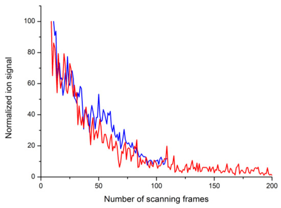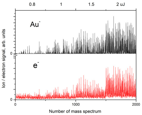 - Reinard, M.S.; Johnston, M.V. Ion formation mechanism in laser desorption ionization of individual nanoparticles. J. Am. Soc. Mass Spectrom. 2008, 19, 389–399. [Google Scholar] [CrossRef]