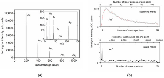 - Alimpiev, S.S.; Belov, M.E.; Nikiforov, S.M. Laser ablation/ionization technique for trace element analysis. Anal. Chem. 1993, 65, 3194–3198. [Google Scholar] [CrossRef]