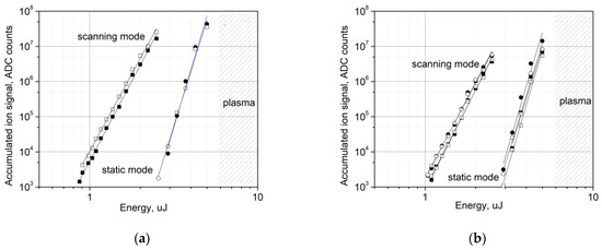 - Vadillo, J.M.; García, C.C.; Alcántara, J.F.; Laserna, J.J. Thermal-to-plasma transitions and energy thresholds in laser ablated metals monitored by atomic emission/mass spectrometry coincidence analysis. Spectrochim. Acta Part B 2005, 60, 948–954. [Google Scholar] [CrossRef]