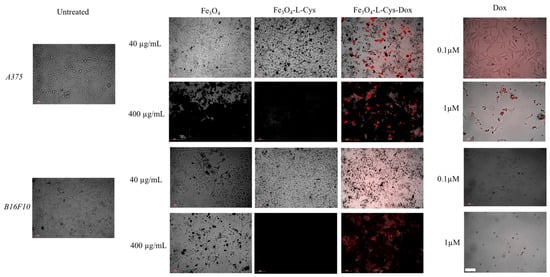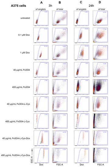 3.4. Dox Uptake by Fe3O4-L-Cys-Dox-Treated Melanoma Cells