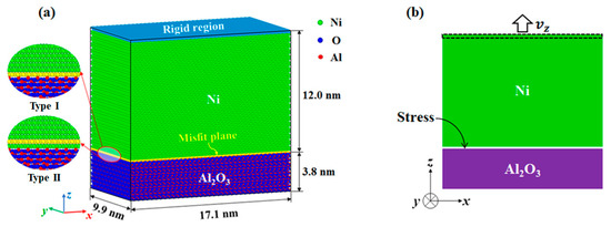 Fu, X. Nanostructure, Plastic Deformation, and Influence of Strain Rate Concerning Ni/Al2O3 Interface System Using a Molecular Dynamic Study (LAMMPS). Nanomaterials 2023, 13, 641. https://doi.org/10.3390/nano13040641