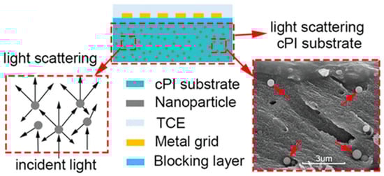Schematic diagram of scattering layer and metal grid in PI substrate. Reprinted with permission from Ref. [116]. 2017, ACS Publications.