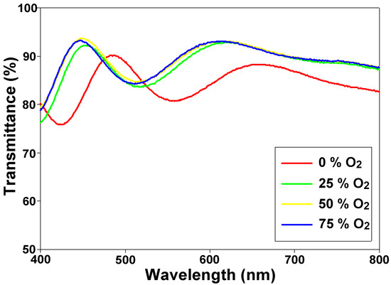 The transmittance of ITO/ITOX/ITO RRAM for the visible wavelength range of 400–800 nm.