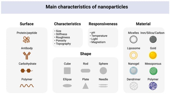 Physical and chemical properties of NPs, including the surface, shapes, characteristics, responsiveness, and nano-based materials. Created with BioRender.com.
