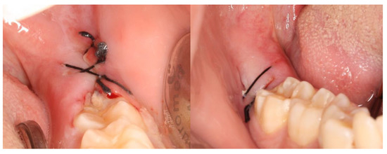 A case example of a patient’s follow-up, 48 h post-surgery. On the left, the result of tooth extraction where chitosan was applied to the socket; on the right, the side subjected to surgery without chitosan application.