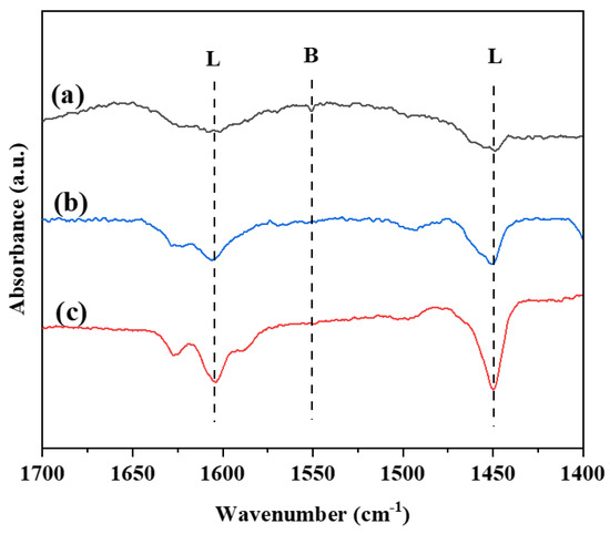 Py-IR patterns of the PtSn/Al2O3 catalysts: (a) PtSn/3DOM-Al2O3; (b) PtSn/3DOMM-Al2O3; (c) PtSn/M-Al2O3.