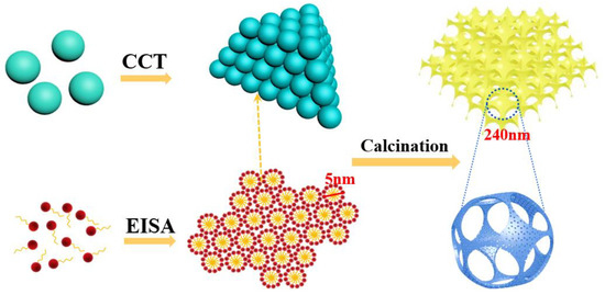 PtSn/γ-Al2O3 catalysts with ordered mesopore (M-Al2O3), 3-dimensional ordered macropore (3DOM-Al2O3), and 3-dimensional ordered macro-mesopore (3DOMM-Al2O3) were obtained by varied methods. Polymethyl methacrylate (PMMA) microspheres were tightly packed three-dimensionally (3D) after the centrifugal operation. As shown in Figure S1, the particle size of the microspheres is around 300 nm. These 3D close-packed microspheres were used to obtain the macropore structure. The PMMA microspheres were immersed in an Al precursor solution. The solution fills the interspace between the PMMA microspheres to build structure of ordered macropores. F127 was employed to obtain a mesoporous structure. As the solvent evaporates, F127 molecules tend to form saturated micelles, which arrange themselves into a two-dimensional hexagon (p6mm) ordered pattern. During the growth process, Al ions adhere to the template to build ordered mesopores. After drying and calcining, the template (F127 and PMMA) can be removed and the ordered pores (macropore and mesopore) structure is obtained. As shown in Scheme 1, the 3DOMM nanostructured catalyst was obtained by the EISA-CCT method using two templates, while the 3DOMM structure was obtained after drying and calcining. For all the catalysts, the templates (F127 micelles or PMMA microspheres) were removed in a tube furnace under air (50 mL min−1) at 300 °C for 3 h, and then the temperature was increased to 650 °C for 4 h to crystallize the alumina. After obtaining γ-Al2O3 with different morphologies, Pt species (0.5 wt%) and Sn species (1 wt%) were added into the support by incipient wetness impregnation to obtain the PtSn/γ-Al2O3 catalyst. A detailed description of the synthesis pathway is listed in part of the Supporting Information.