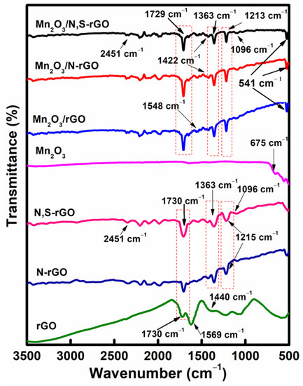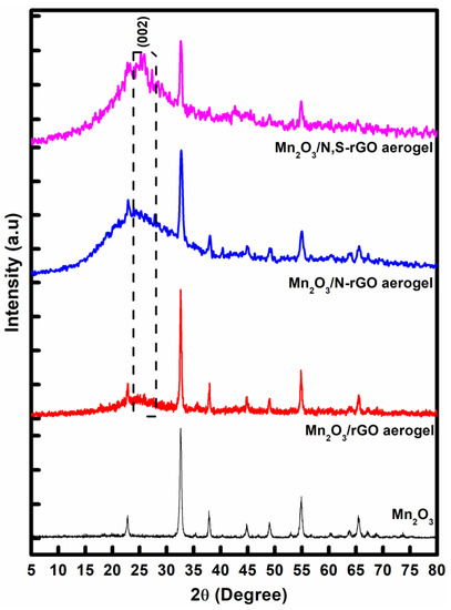 2.2. Synthesis of Mn2O3/rGO and Mn2O3/Heteroatom-Doped rGO Aerogels