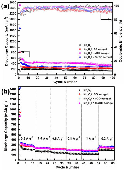 - Zhang, L.; Ge, D.; Geng, H.; Zheng, J.; Cao, X.; Gu, H. Synthesis of porous Mn2O3 embedded in reduced graphene oxide as advanced anode materials for lithium storage. New J. Chem. 2017, 41, 7102–7107. [Google Scholar] [CrossRef]