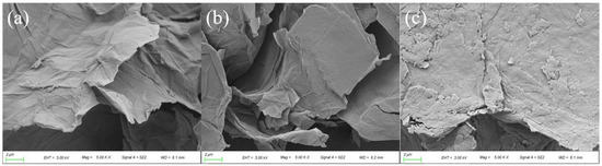 SEM images of the prepared GO sheets (a), GO-RAFT (b), and GO-MIPs (c).