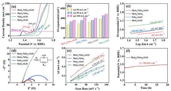 Bai X, Cao T, Xia T, Wu C, Feng M, Li X, Mei Z, Gao H, Huo D, Ren X, et al. MoS2/NiSe2/rGO Multiple-Interfaced Sandwich-like Nanostructures as Efficient Electrocatalysts for Overall Water Splitting. Nanomaterials. 2023; 13(4):752. https://doi.org/10.3390/nano13040752