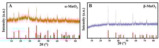 XRD patterns of α-MnO2 (A) and β-MnO2 (B).