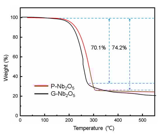 TGA curves of the P-Nb2O5 and G-Nb2O5.