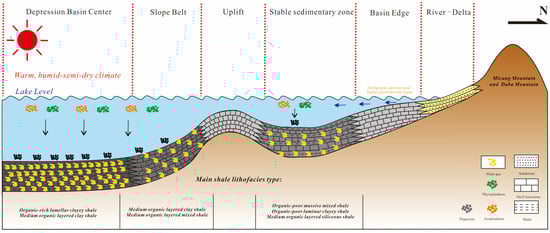 - Liu, Z.; Hu, Z.; Liu, G.; Li, P.; Wang, P.; Li, Q.; Jin, Z.; Zhang, Z. Source-reservoir coupling characteristics and development model of continental shale: Taking the Jurassic Ziliujing Formation in Sichuan Basin as an example. Mar. Orig. Pet. Geol. 2022, 27, 271–280, (In Chinese with English abstract). [Google Scholar]