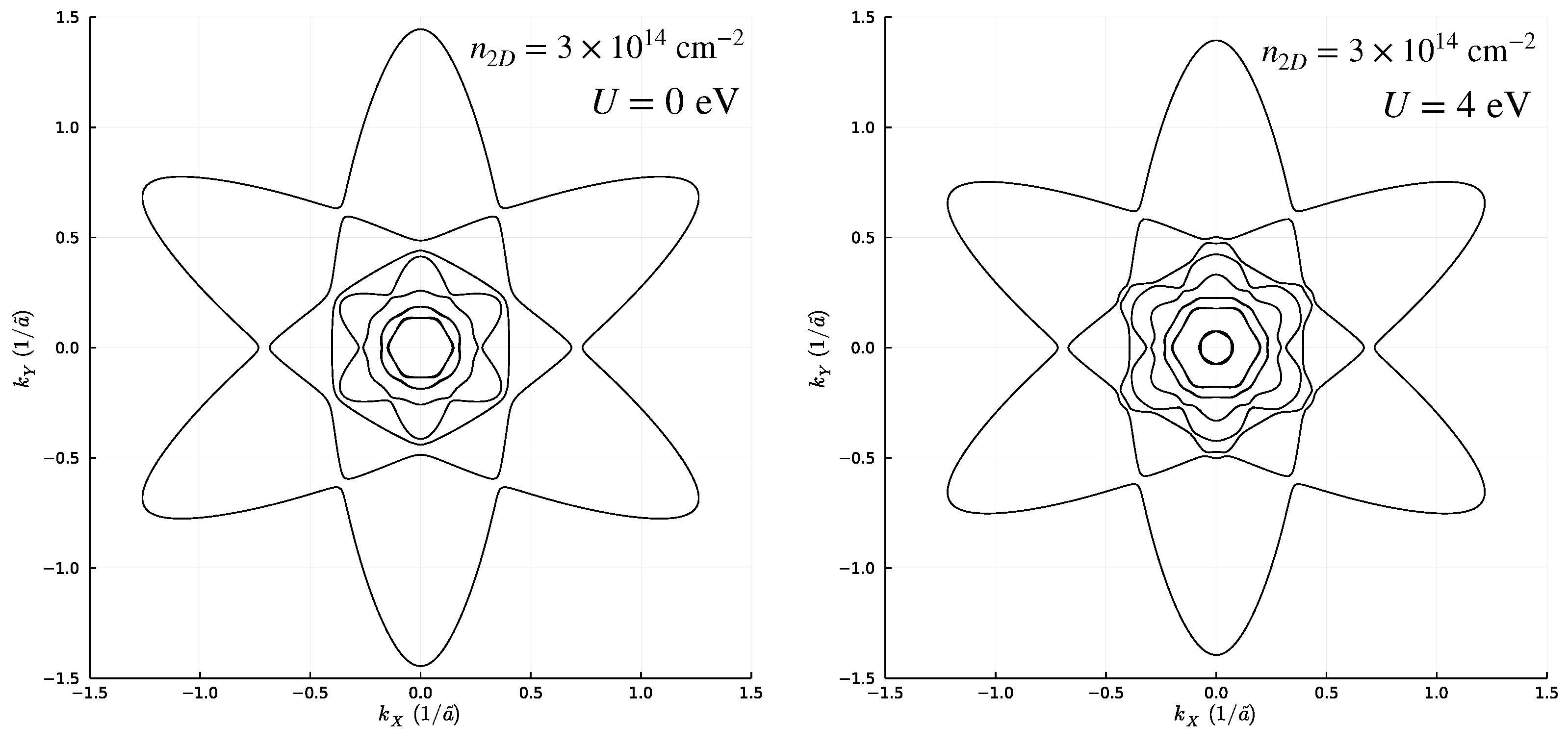 2.2. Results in the Absence of Local Hubbard Interaction Terms