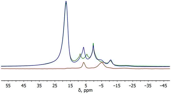 Solid-state NMR measurements were carried out on a Bruker AVANCE 400 WB NMR spectrometer (Bremen, Germany) at a temperature of T = 293 K. The measurements were carried out on the 31P nuclei at a frequency of 162.056 MHz. For measurements, a MAS 4 BL CP BB DVT (Bruker, Bremen, Germany) probe was used. The studied samples were packed into a 4 mm zirconium oxide rotor and were rotated at the magic angle with a rotation speed of 12 kHz. The duration of the exciting 90-degree pulses for phosphorus nuclei was 3.4 µs. The standard impulse programs zg, hpdec, and cp were used. The number of points in the time domain was the same for all experiments and was equal to 2048. The number of FID accumulations varied from 256 to 512 to obtain an acceptable signal-to-noise ratio. The time between FID accumulations in experiments on phosphorus nuclei was 20 s. The width of the spectra obtained for phosphorus nuclei was 69.5 kHz. In experiments with cross-polarization, the time varied from 1 to 5 ms to obtain the maximum signal.