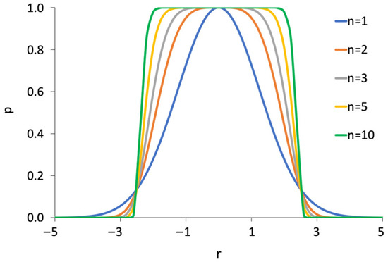 The beam profile is described by a super-Gaussian probability distribution (Figure 2) and allows to roughly approximate beam defocus by varying σ and n: