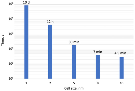 Total time of simulated growth of a 500 nm pillar with different grid discretization on a PC*. *PC—Intel 8-core i7-7700HQ 2.8GHz, 32Gb RAM.
