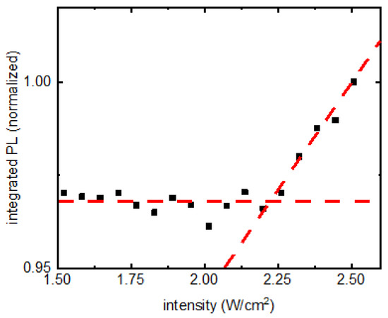 Considering the similarity among the deposited PQD films in thickness and uniformity, it is highly unlikely that the difference in PL saturation stems from the intrinsic properties of the films themselves. Rather, it appears that the change in threshold is due to the interaction of PQD films with the substrates. It was previously shown that GaAs significantly alters emission properties of quantum dot systems [7]. However, reproducing the same with reasonably low intensity is a noteworthy development. The saturation of PL intensity, due to saturation of absorption with CW excitation, was previously reported in quantum-dot-based saturable absorption mirrors [10,11,12,15]. The saturation of absorption was attributed to nonlinear refractive index of the quantum dot ensembles [11,15].
