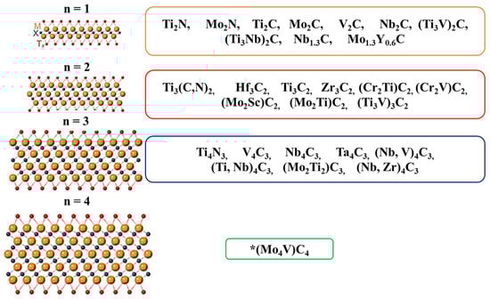 - Anasori, B.; Xie, Y.; Beidaghi, M.; Lu, J.; Hosler, B.C.; Hultman, L.; Kent, P.R.C.; Gogotsi, Y.; Barsoum, M.W. Two-Dimensional, Ordered, Double Transition Metals Carbides (MXenes). ACS Nano 2015, 9, 9507–9516. [Google Scholar] [CrossRef]