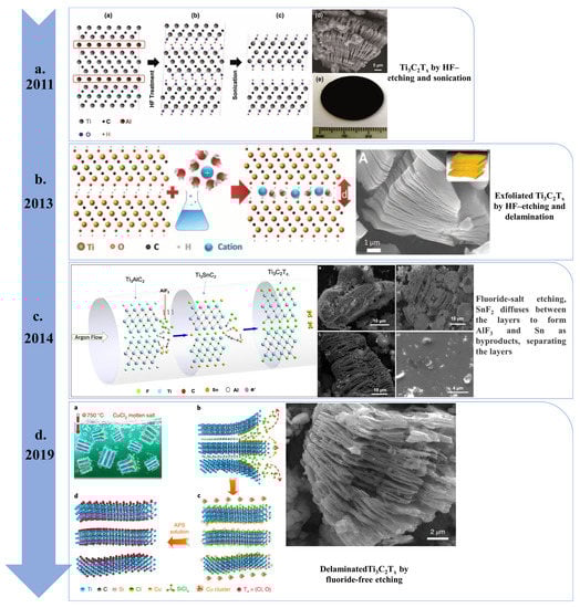 - Pang, S.; Wong, Y.; Yuan, S.; Liu, Y.; Tsang, M.-K.; Yang, Z.; Huang, H.; Wong, W.; Hao, J. Universal Strategy for HF-Free Facile and Rapid Synthesis of Two-dimensional MXenes as Multifunctional Energy Materials. J. Am. Chem. Soc. 2019, 141, 9610–9616. [Google Scholar] [CrossRef]