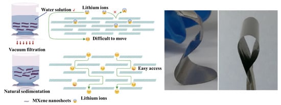 - Sun, N.; Guan, Z.; Zhu, Q.; Anasori, B.; Gogotsi, Y.; Xu, B. Enhanced Ionic Accessibility of Flexible MXene Electrodes Produced by Natural Sedimentation. Nano-Micro Lett. 2020, 12, 89. [Google Scholar] [CrossRef] [PubMed]